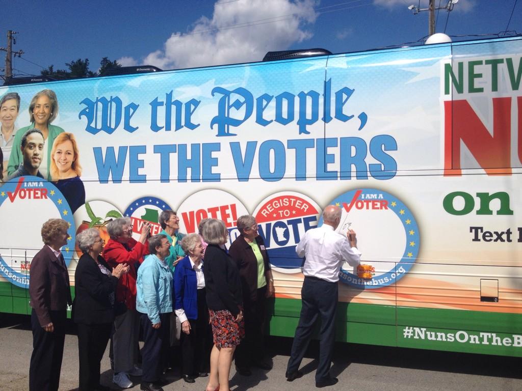 El Vicepresidente de EEUU acudió para apadrinar el lanzamiento de la gira política de un peculiar grupo progresista llamado Nuns on the Bus (Monjas en autobús).