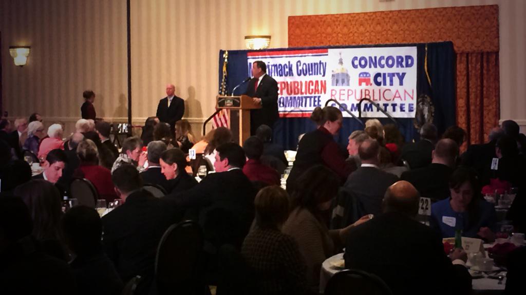 Chris Christie (R) fue anoche el invitado estrella de la cena Lincoln-Reagan de los republicanos del condado de Merrimack (Concord). Fue la primera visita del gobernador de New Jersey a New Hampshire desde las elecciones de noviembre, antes de las cuales estuvo hasta cinco veces en el estado haciendo campaña por el entonces candidato republicano a gobernador, Walt Havenstein.