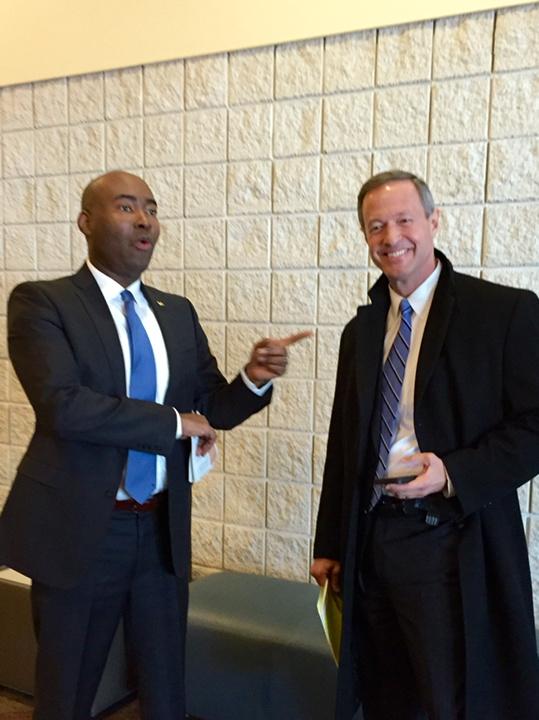 | Martin O'Malley con Jaime Harrison, presidente de los demócratas de Carolina del Sur, ayer en Myrtle Beach. (Foto: @UncNJA) |