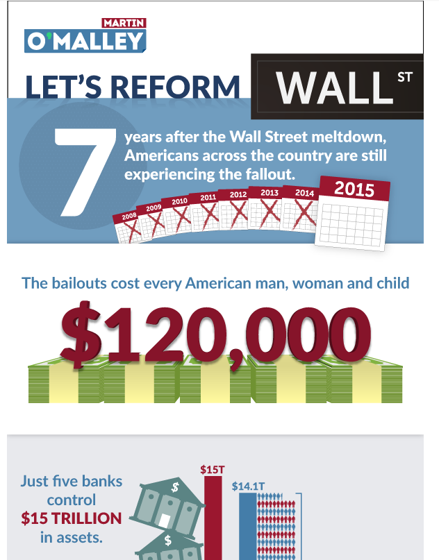 GOBERNADOR O'MALLEY: "Las primas a Wall Street fueron el doble de lo que cada madre y padre americanos que trabajan a tiempo completo con un salario mínimo llevaron a casa. No es así como se supone que tiene que funcionar nuestra economía. Yo no me lo trago."