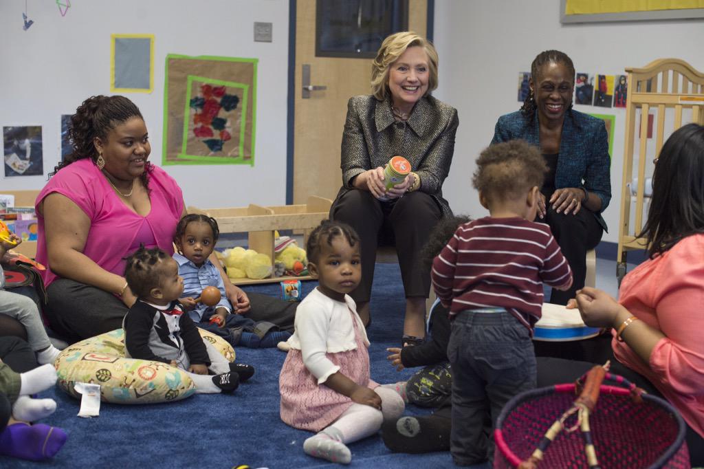 | Hillary Clinton ayer en una guardería de Brooklyn. (Foto: @Chirlane) |