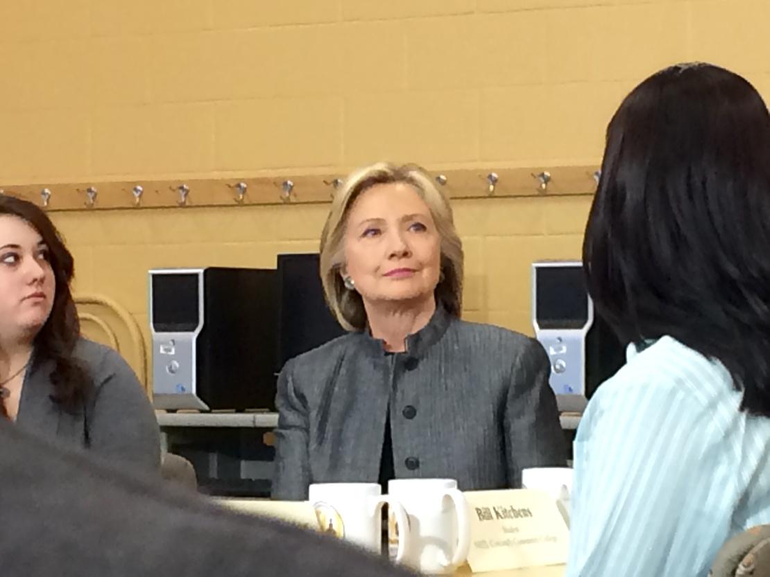 En su segunda jornada en New Hampshire, Hillary Clinton (D) ha visitado una universidad comunitaria en Concord, donde ha inspeccionado tornos de control numérico con un enorme interés y ha celebrado una nueva mesa redonda (ver vídeo).