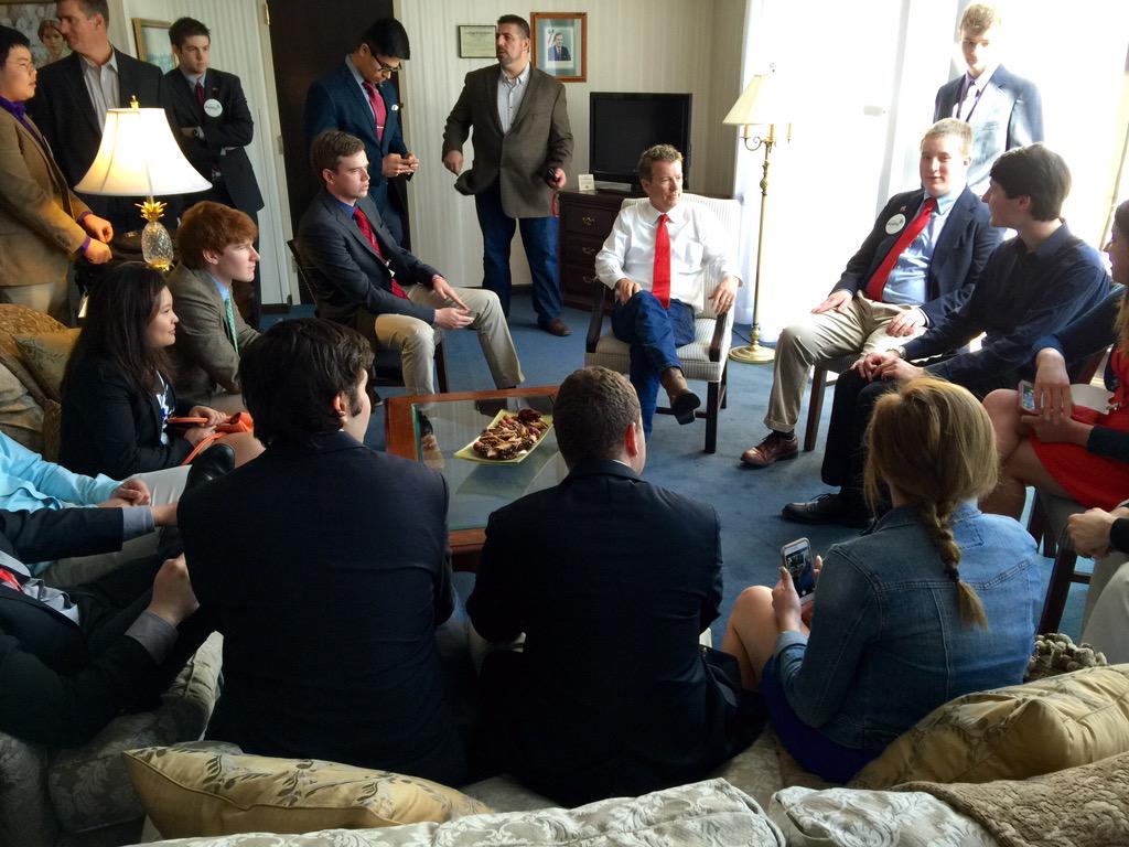 El senador por Kentucky se ha reunido con una delegación de los College Republicans de New Hampshire en Nashua y ha visitado una cafetería en Merrimack.