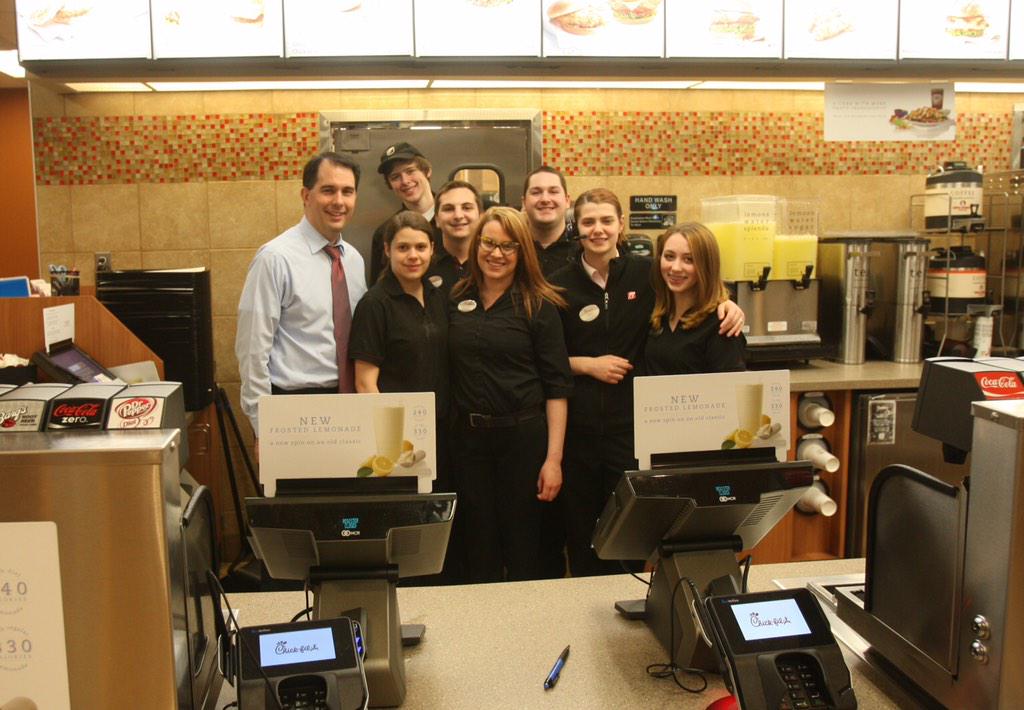 El gobernador de Wisconsin visitó un restaurante de comida rápida para cenar un sándwich de pollo.
