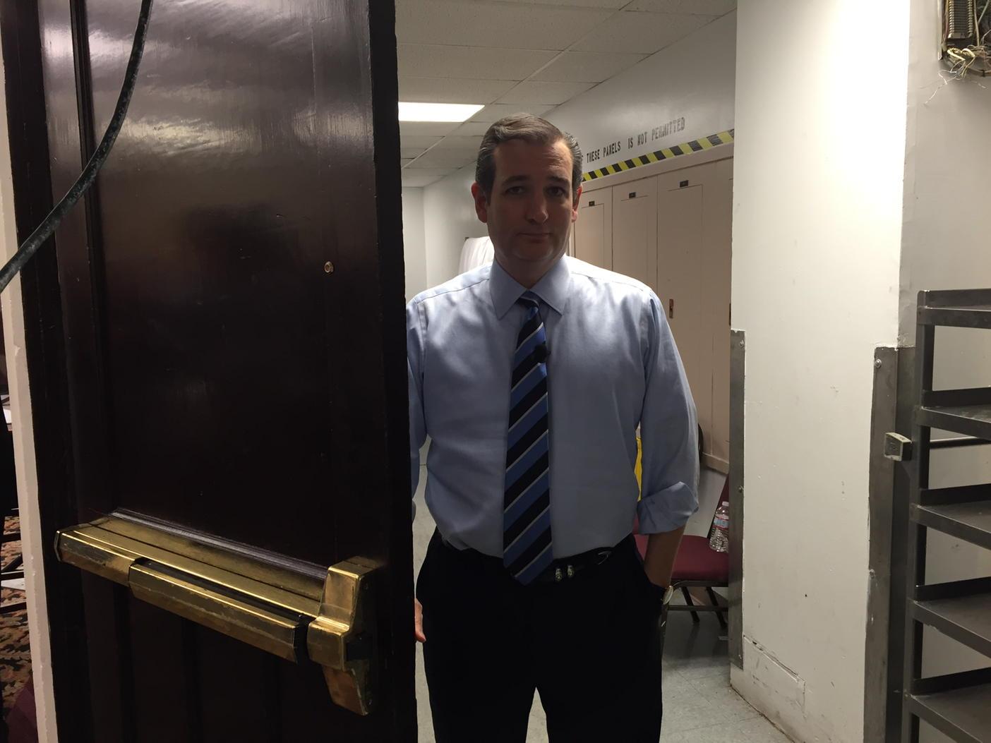 | Ted Cruz antes de salir al escenario en el hotel Crowne Plaza de Nashua, New Hampshire. (Foto: @ricktyler) |