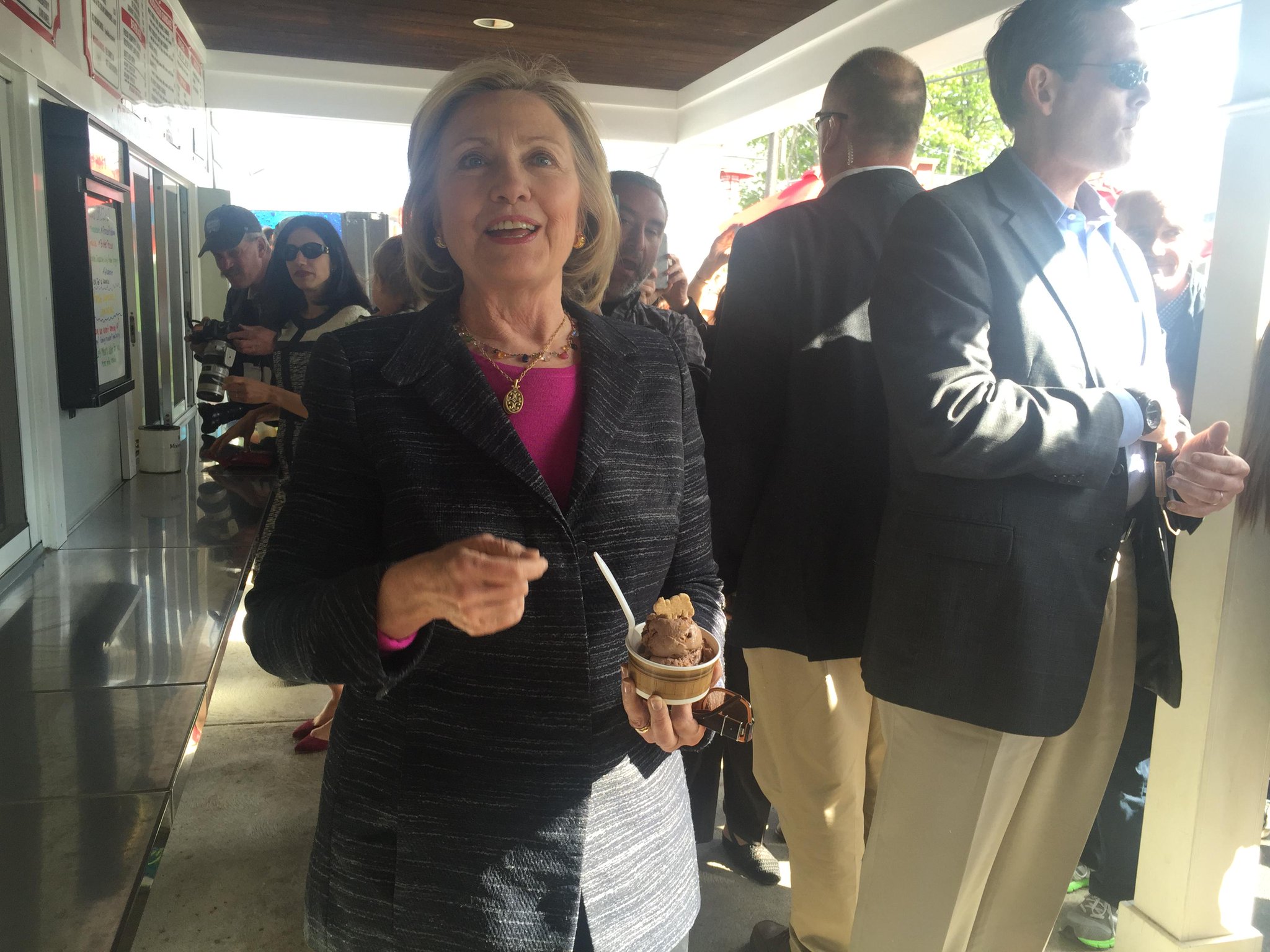| Hillary más pendiente de su helado de chocolate que de su asesora Huma Abedin. (Foto: @jeneps) |