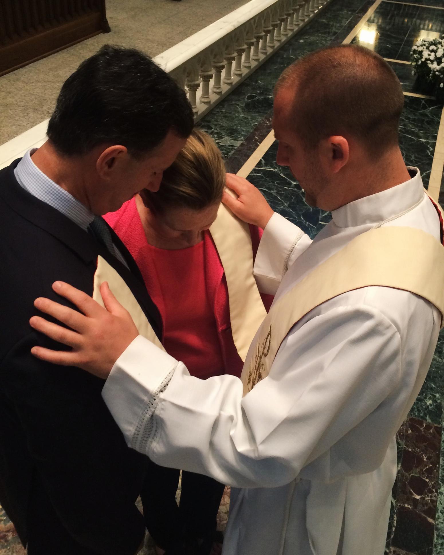 | Rick Santorum y su mujer Karen recibieron ayer una bendición en la catedral de San Pablo de Pittsburgh. (Foto: @RickSantorum) |