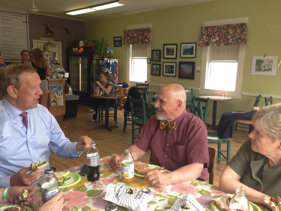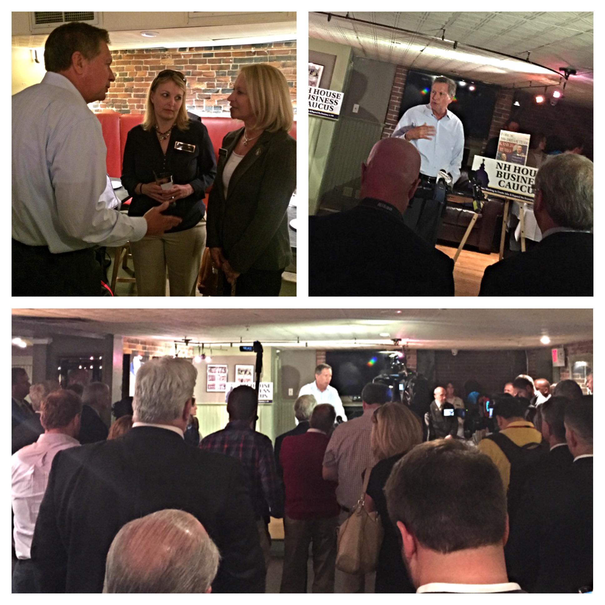 John Kasich (R) en el 'Martha's Exchange' de Manchester y el 'Barley House' de Concord