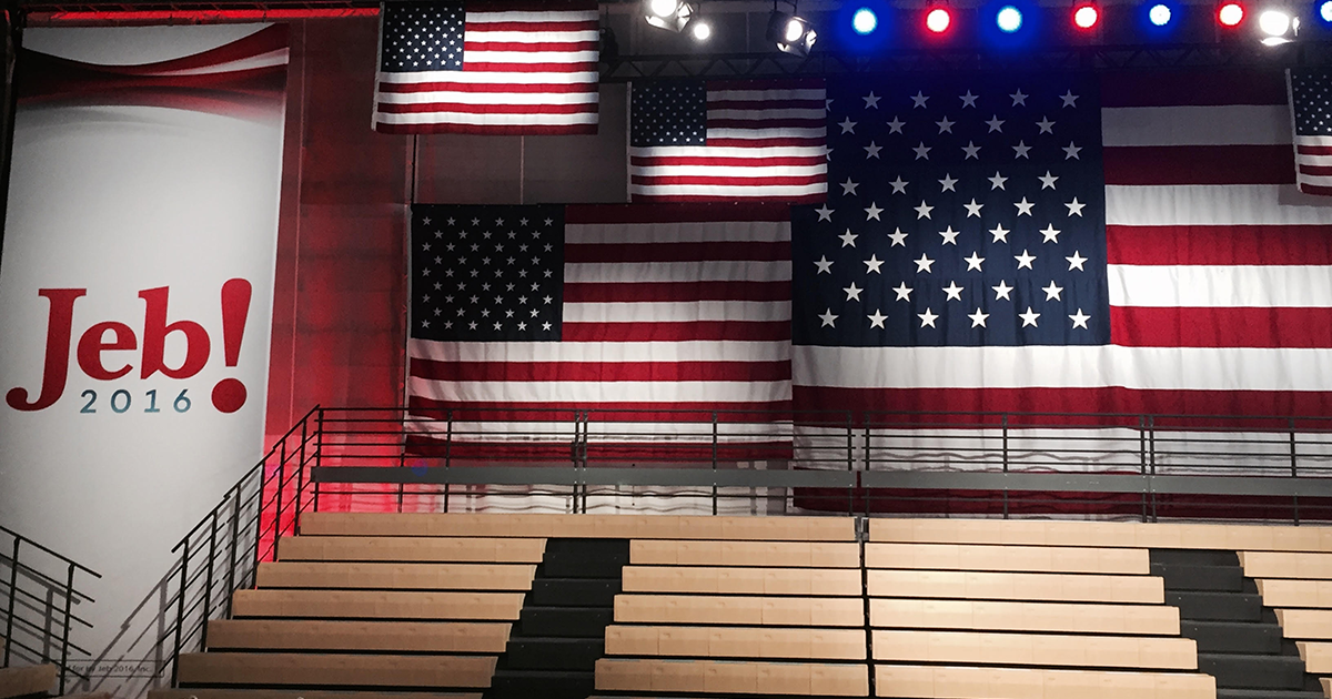 Todo está listo en el Miami Dade College para que el ex gobernador de Florida, hijo y hermano de Presidentes, anuncie esta tarde su candidatura presidencial.