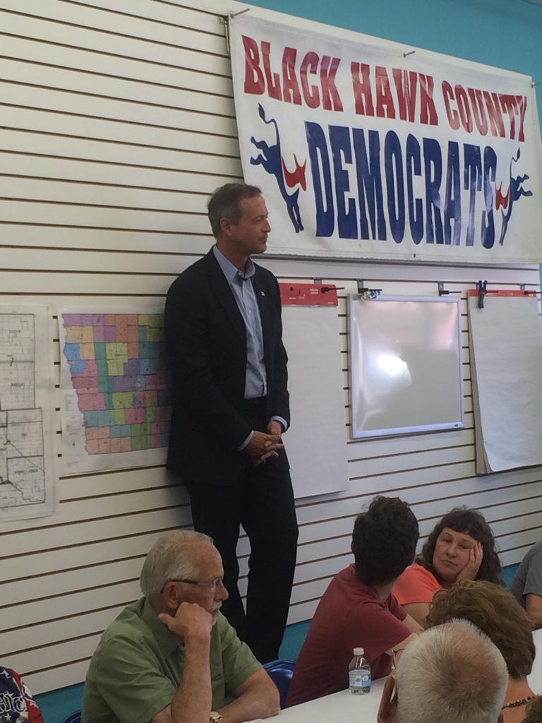 | Martin O'Malley dándolo todo ante cuatro gatos en Iowa. (Foto: @bennyjohnson) |