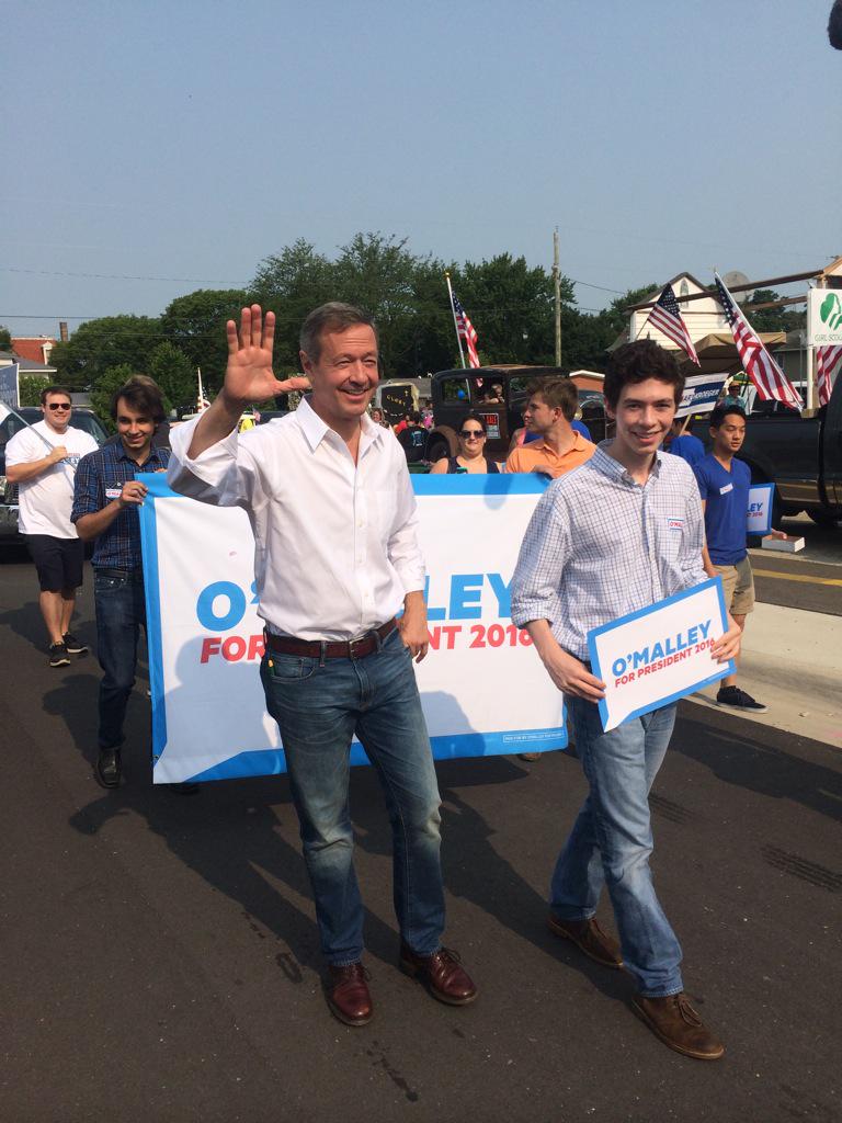 | O'Malley y su hijo William en el desfile del 4 de Julio de Independence, en el Este de Iowa. (Foto: @GrantMRodgers) |