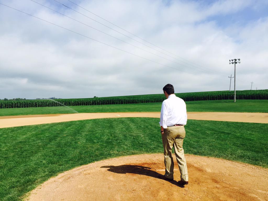 | Ted Cruz esta mañana en el campo de los sueños de Dyersville, Iowa. ¿Es esto el cielo? No, es Iowa. (Foto: @TedCruz) |