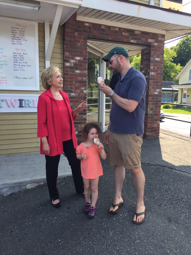 La ex secretaria de Estado también hizo una parada improvisada en el Dairy Twirl, un local de Lebanon famoso por sus helados y sus yogures, donde nadie se altera cuando ve a un candidato presidencial porque son ya como de la familia.