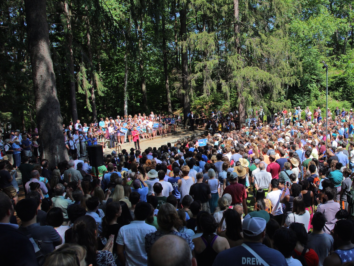 Hillary Clinton (D) atrajo ayer a unas 850 personas a un picnic a la sombra de los árboles que rodean el río Connecticut en los terrenos de la Dartmouth College en Hanover, New Hampshire.
