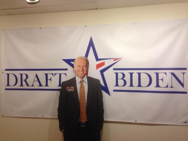 | Un Joe Biden de cartón en la sede del grupo Draft Biden (Reclutar a Biden). (Foto: @draftbiden) |