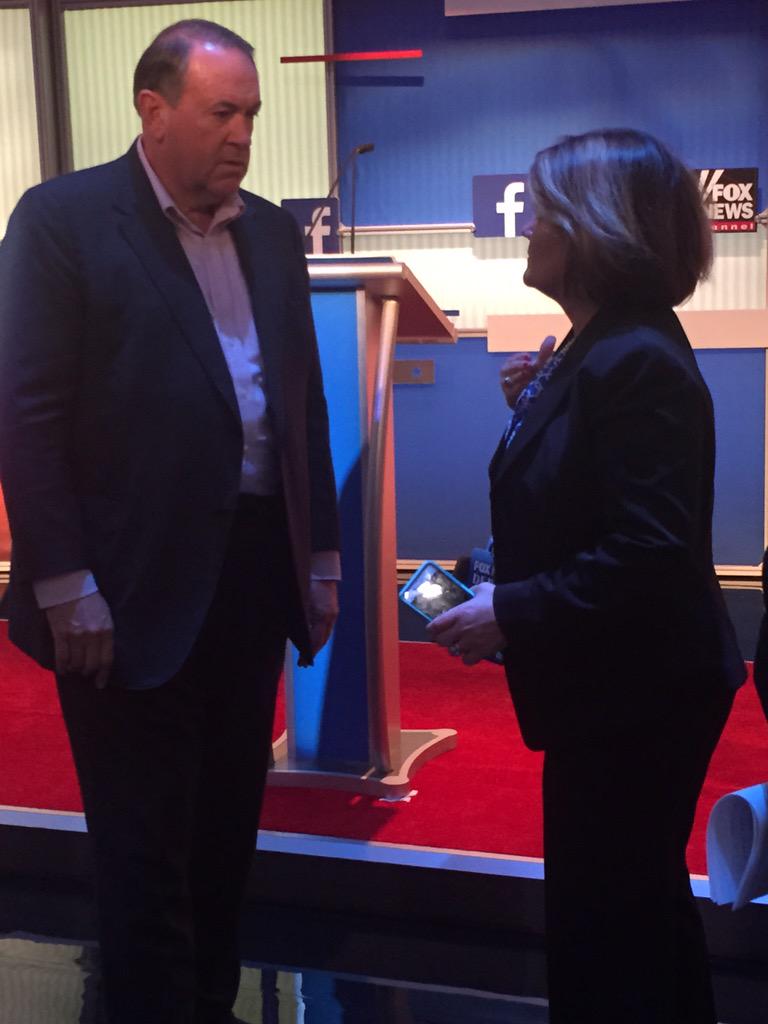 | Mike Huckabee pasea por el escenario. El ex gobernador de Arkansas no conoce los nervios. (Foto: @BretBaier) |
