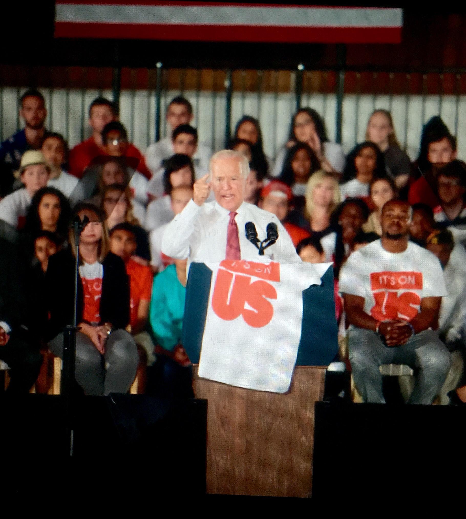 | Joe Biden el pasado jueves en Ohio apoyando una campaña contra las agresiones sexuales en los cámpuses universitarios. (Foto: @StudentLifeOSU) |