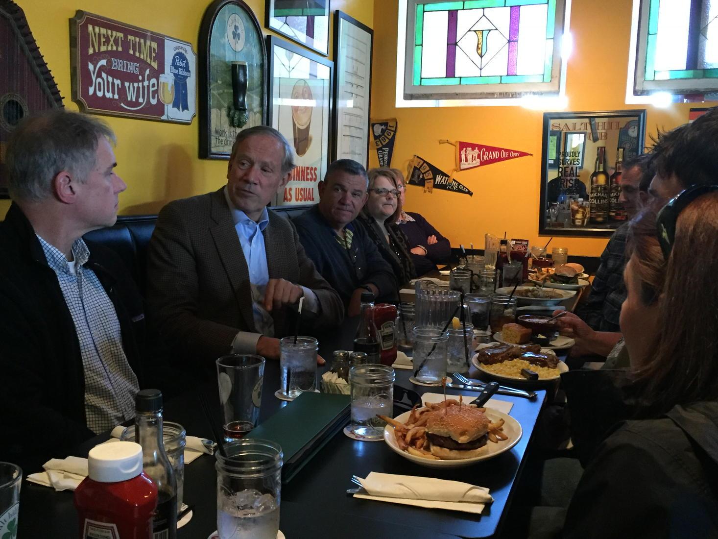 | El ex Gobernador de Nueva York George Pataki (R) hizo campaña en Lebanon, New Hampshire como más le gusta: siendo invitado a comer. (Foto: @sheridantbrown) |