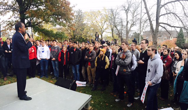 Ben Carson (R) quiso que su primer acto electoral en Iowa desde que pasó a encabezar las encuestas en el estado del ojo de halcón fuese con los estudiantes de la Universidad de Iowa en el campus de Ames.