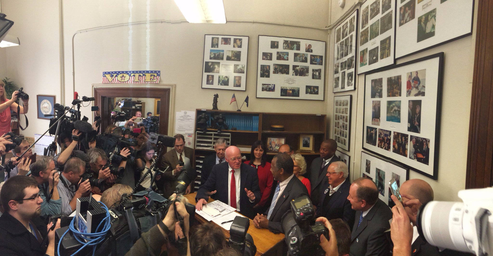 El Secretario de Estado de New Hampshire Bill Gardner ha bromeado con Carson sobre el riesgo que supone esperar hasta el último día para inscribirse. Los candidatos que se apuntan el último día no pueden hacerlo por correo ni enviando a un representante en su lugar en caso de una emergencia. Tienen que acudir en persona al despacho de Gardner.