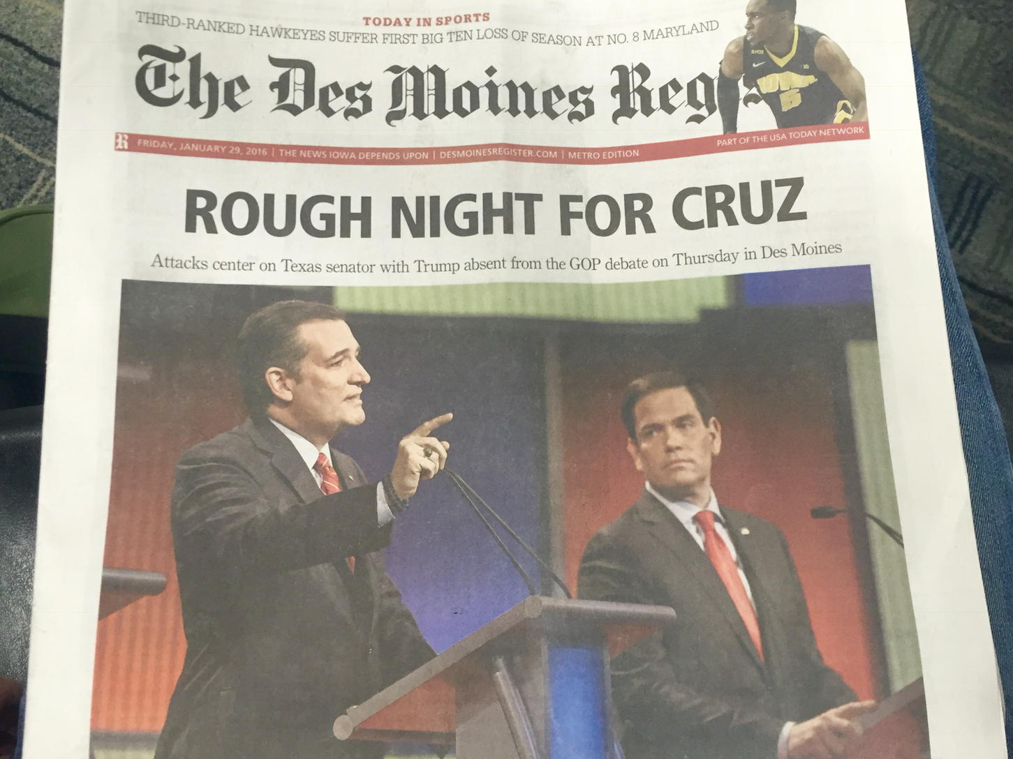 Des Moines Register: "Una noche dificultosa para Cruz"