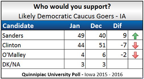 Encuesta de Quinnipiac: Bernie adelanta a Hillary en Iowa