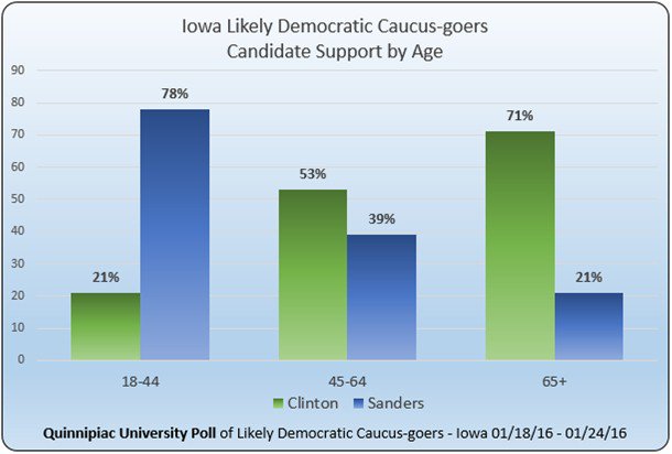 Encuesta de Quinnipiac: ligera ventaja de Bernie Sanders en Iowa que depende de los muy liberales y los jóvenes