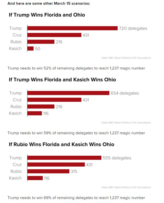 El último escenario es a priori el que dispararía más las posibilidades de que haya una convención abierta. Pero cuidado, porque puede tener trampa: un escenario en el que los tres rivales de Trump encuentren argumentos para seguir en la carrera durante un tiempo posibilitará que el porcentaje de voto que Trump necesite para continuar ganando primarias en otros estados sea menor que si se enfrentase solo a dos rivales o a uno.