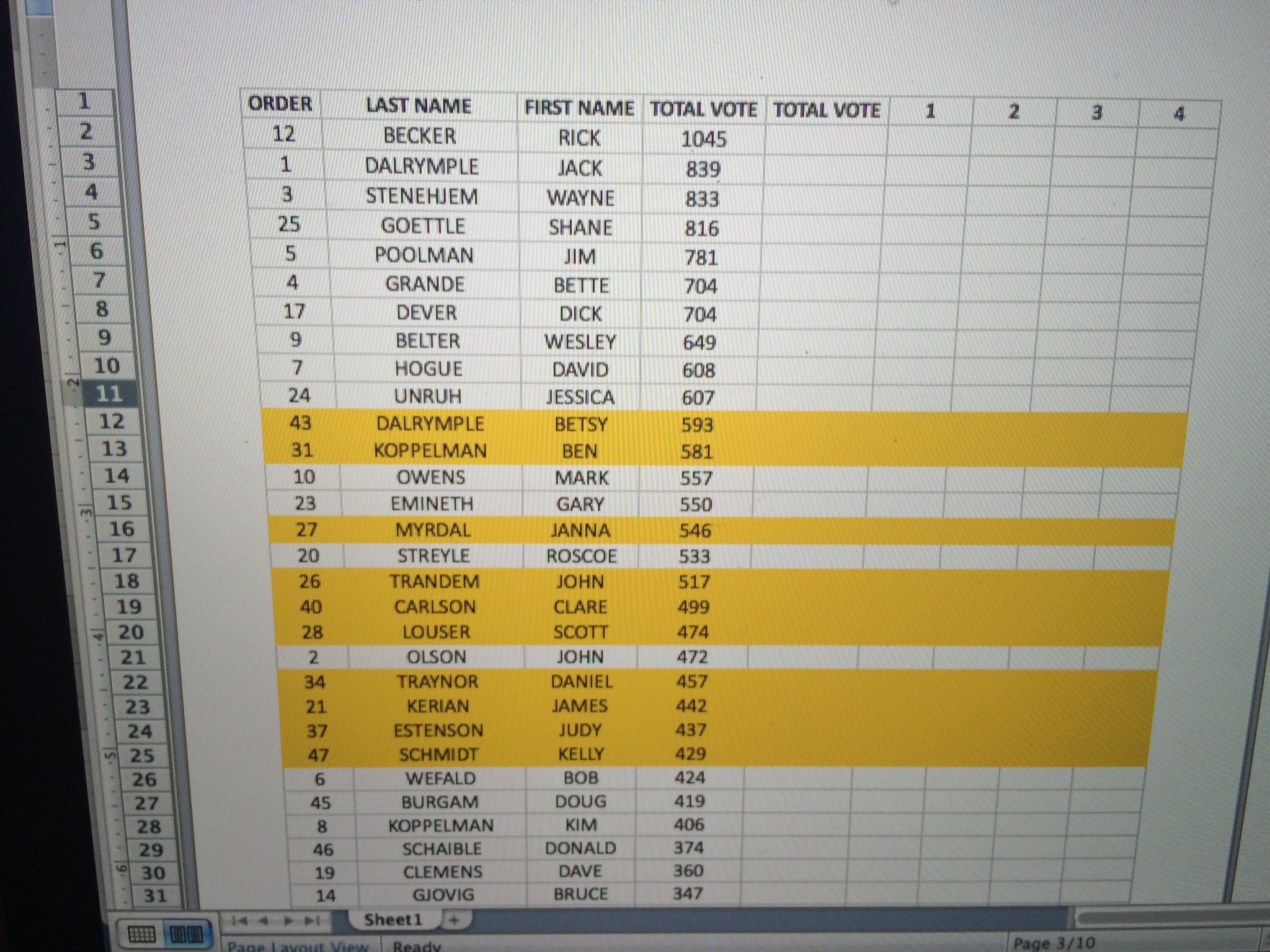 Los 25 primeros nombres de la lista son los delegados que han resultado elegidos en la convención republicana de Dakota del Norte para que representen al estado sin ninguna obligación con ningún candidato en la convención nacional republicana que se celebrará en julio en Cleveland. 19 de ellos estaban entre los nombres recomendados por la campaña de Ted Cruz. Y de los otros seis, cuatro son puro establishment (anti-Trump), ya que se trata del Gobernador de Dakota del Norte Jack Dalrymple, su mujer Betsy, el fiscal general del estado y un importante lobista. Uno no está vinculado a ningún candidato activo, aunque, después de un análisis de su actividad tuitera (retuits y favoritos), puede decirse que es una antigua simpatizante de Carly Fiorina -Fiorina ahora apoya a Cruz. Y otro tiene simpatías tanto por Donald Trump como por John Kasich.