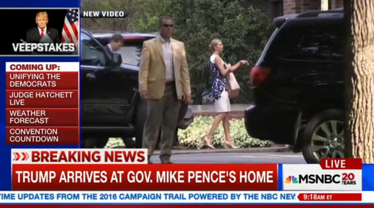 Donald Trump y su hija y virtual campaign manager, la incomparable Ivanka (de modelo Trump a jefa de campaña Trump), se encuentran esta mañana en la residencia del Gobernador de Indiana Mike Pence. Y no es porque anoche no pasaran suficiente tiempo juntos, porque después del mitin tuvieron una cena privada con el gobernador en el Hotel Conrad de Indianapolis. Demasiados encuentros seguidos...
