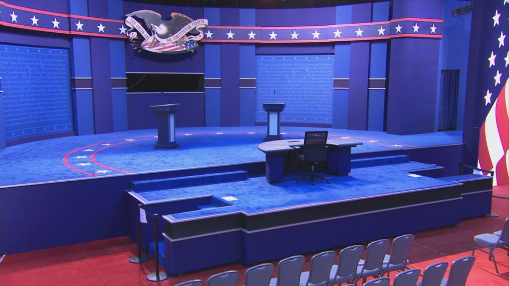 En la Universidad Hofstra de Hempstead, Nueva York está todo listo. Vemos un plató tremendamente austero, como es habitual en los debates de las elecciones generales, sin marcas ni patrocinadores.