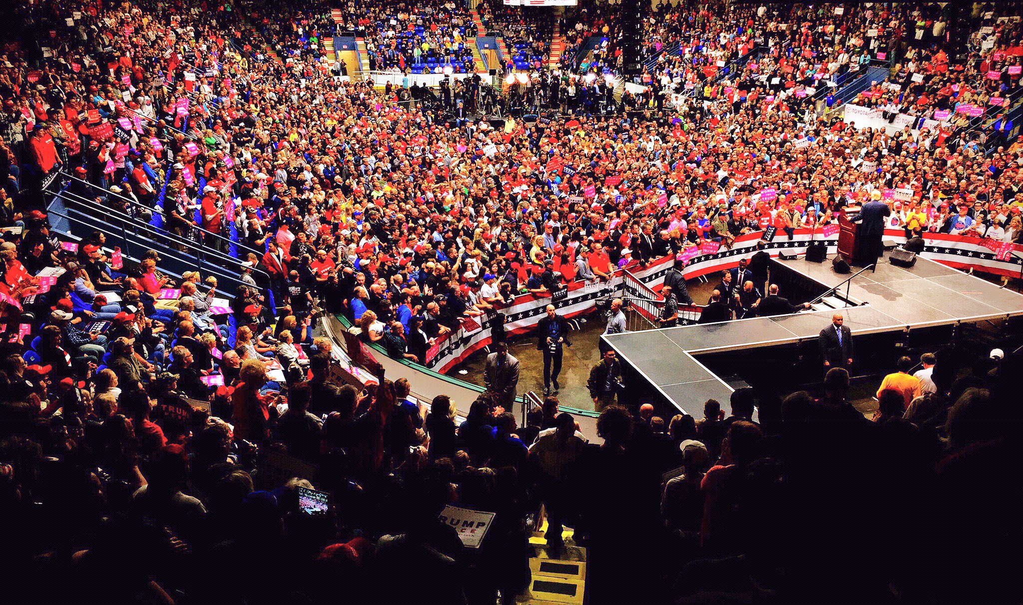 El Donald ha llenado el War Memorial Arena de Johnstown. Unas 6,000 personas dentro del pabellón