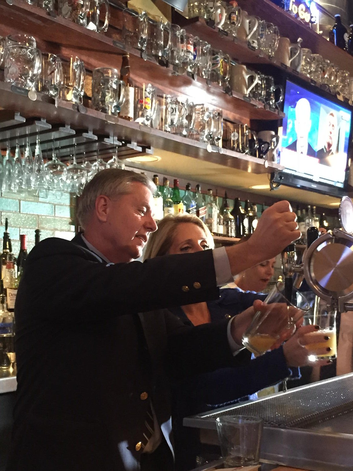 | Lindsey Graham ejerció de camarero por una noche. (Foto: @donmoyn) |
