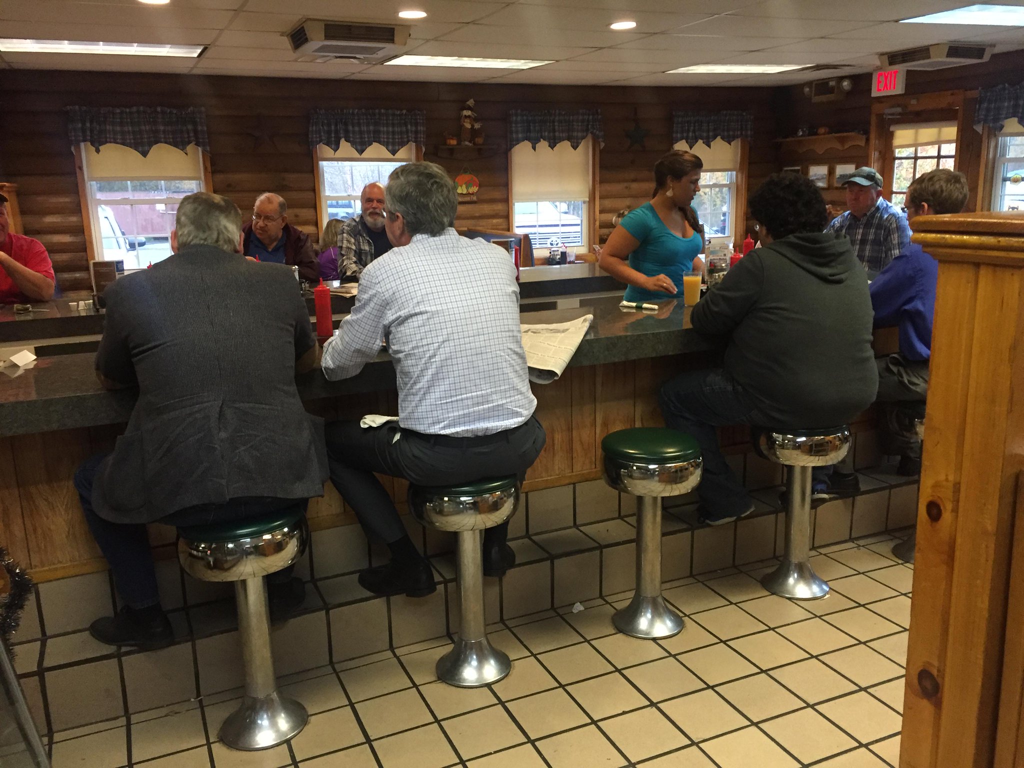 | Jeb Bush desayunando huevos con bacon la semana pasada en la barra de un restaurante de Lebanon, New Hampshire. (Foto: @JebBush) |