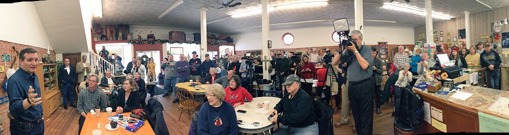 Subiendo en las encuestas, Ted Cruz (R) inició ayer una gira de 3 días por Iowa. En la primera jornada, se concentró en pequeños pueblos de la mitad sur de Iowa.